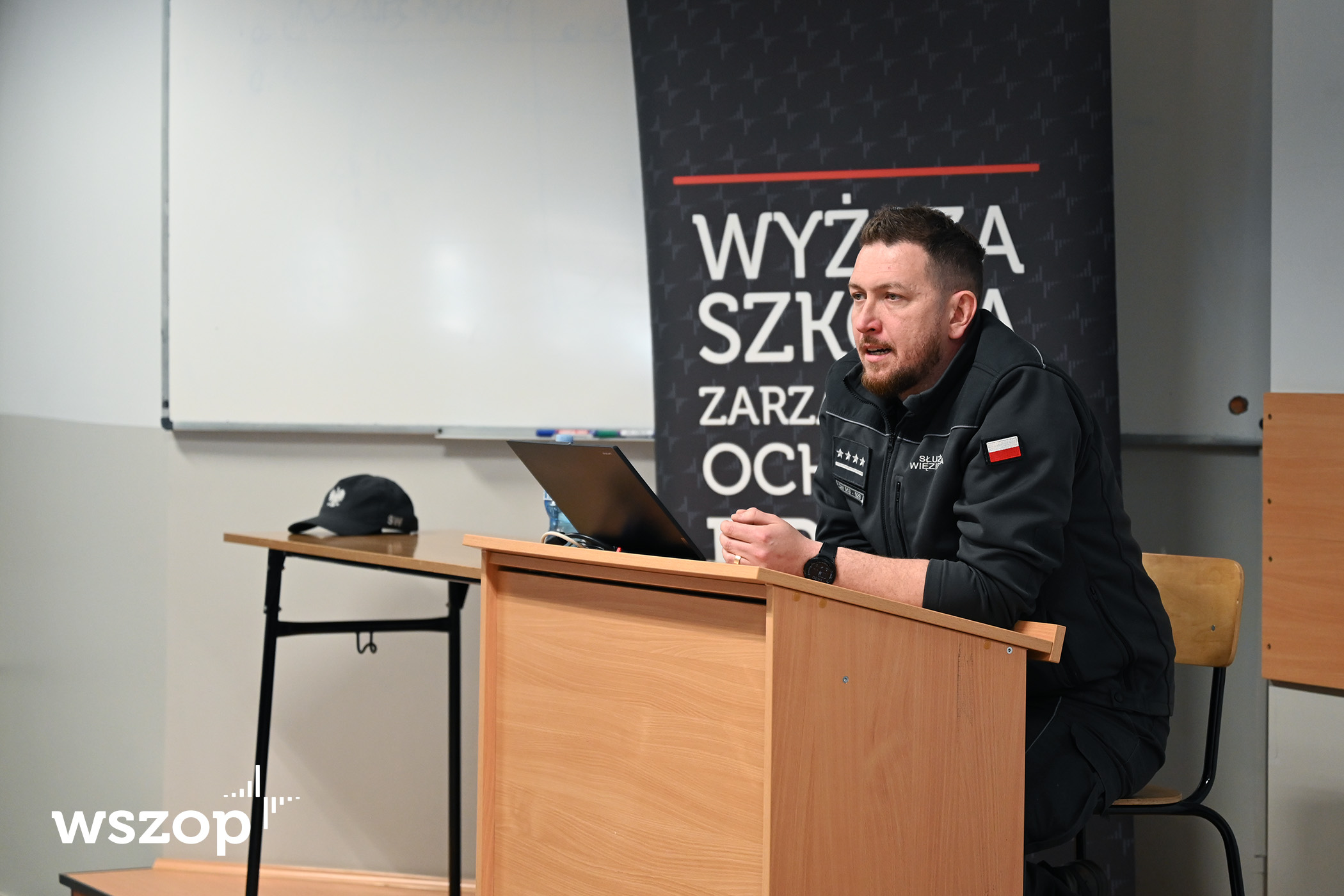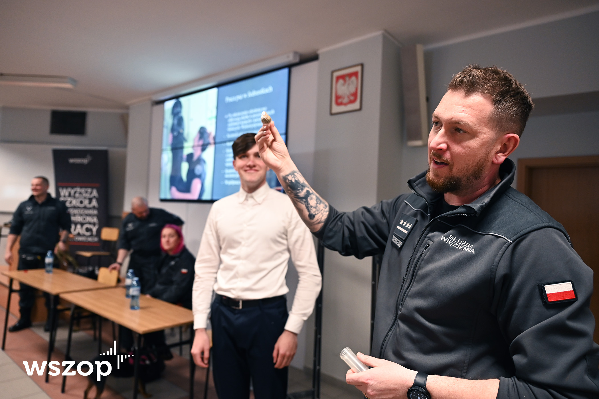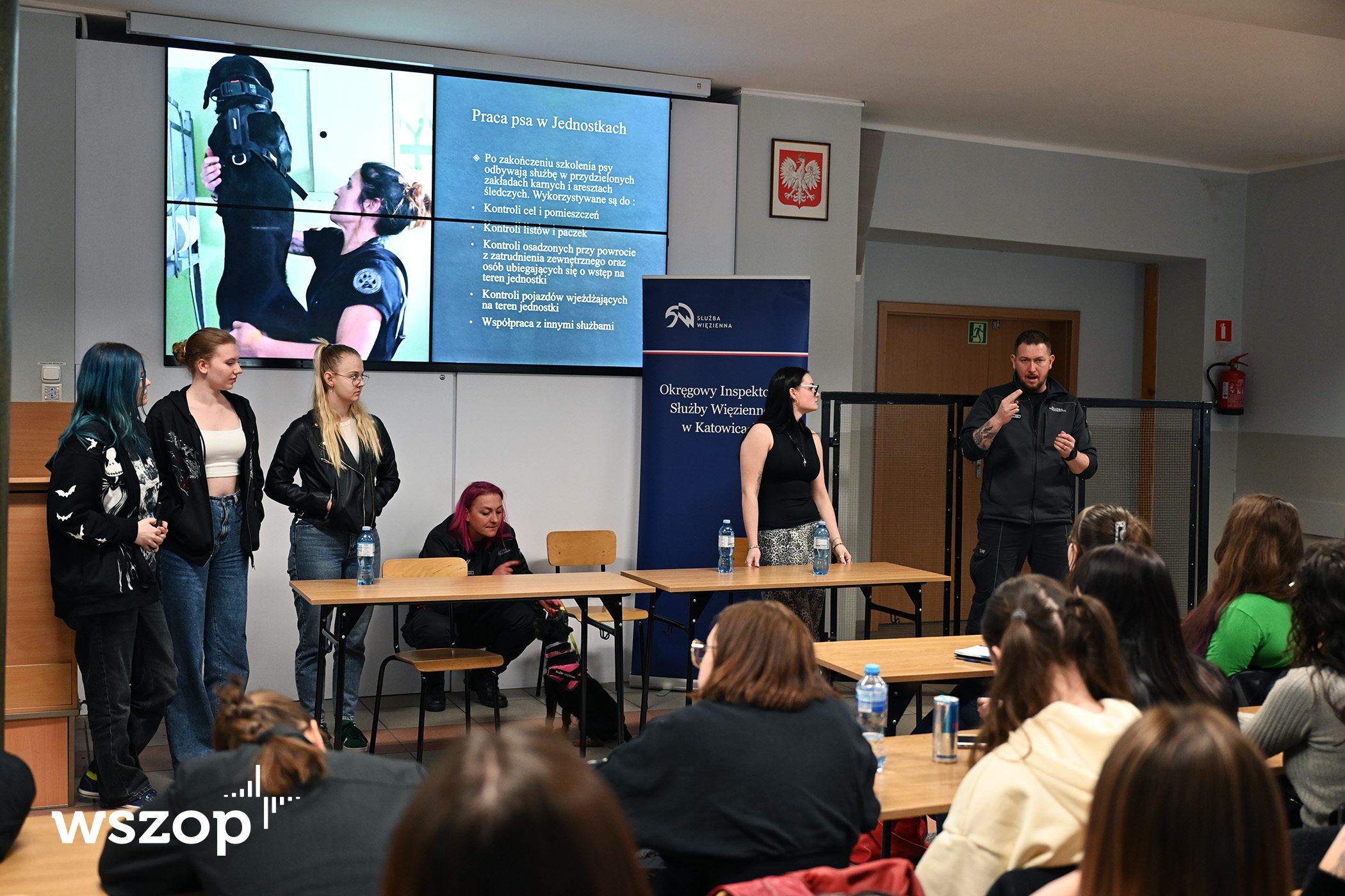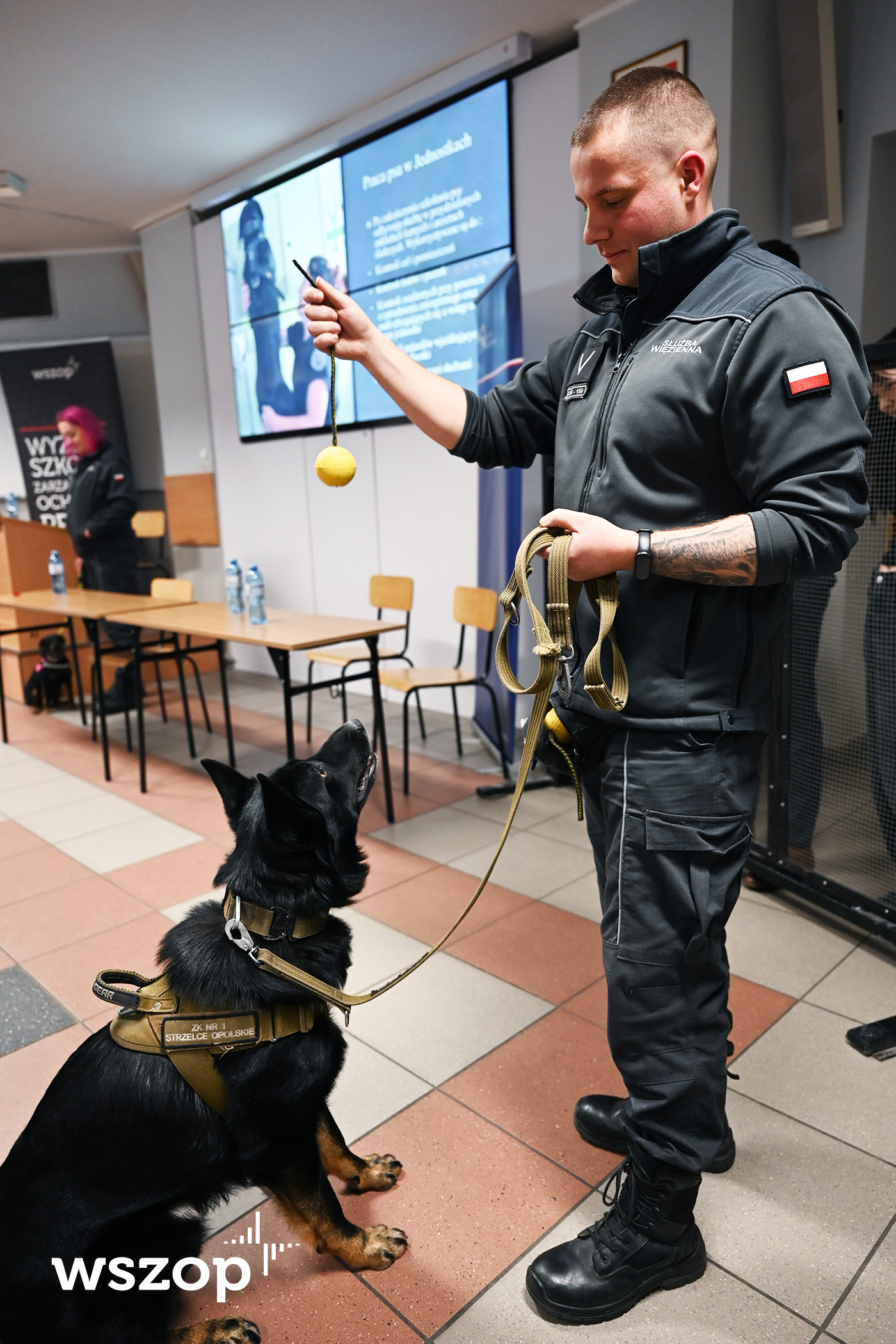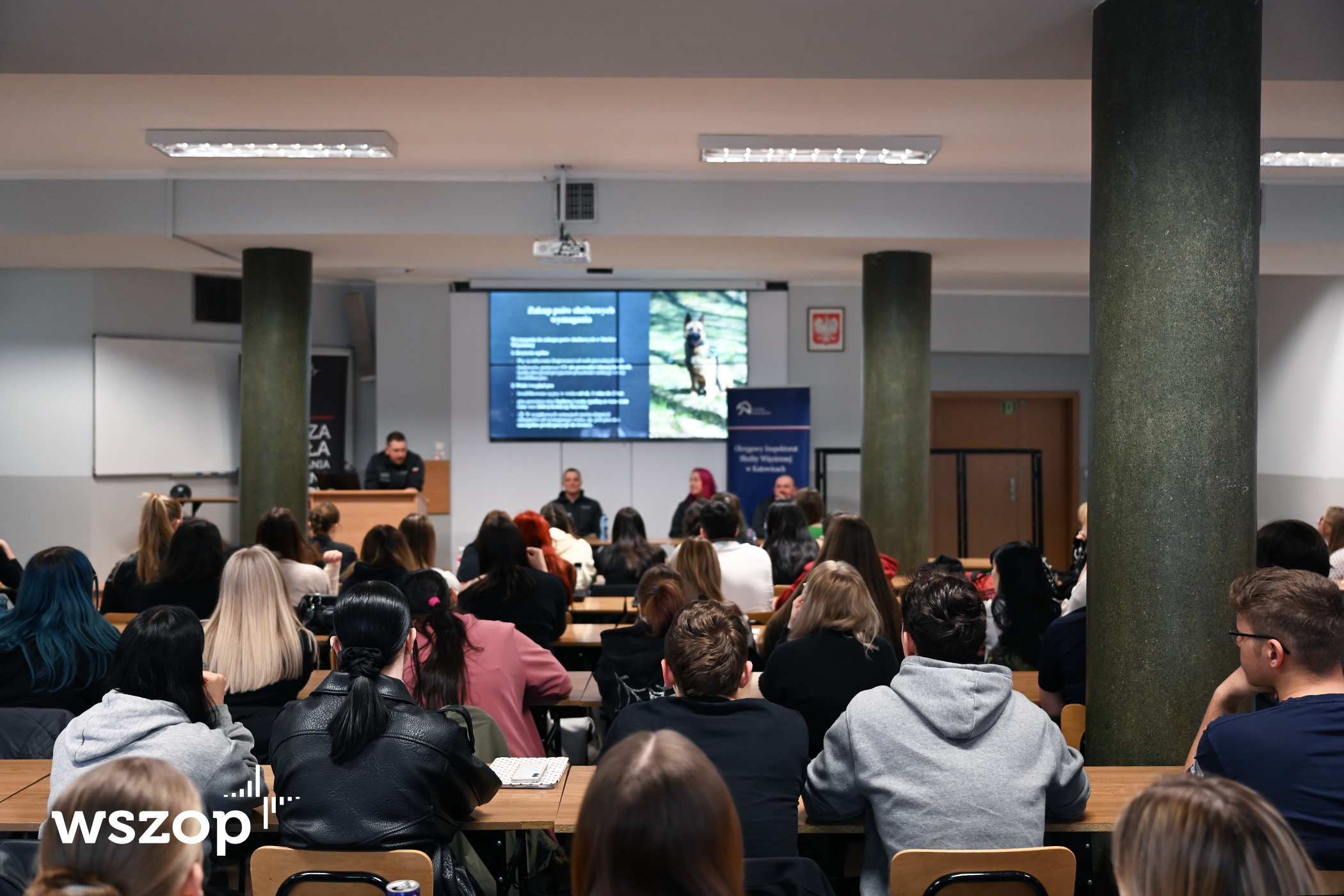 W ubiegły poniedziałek, 30 marca 2026 r. na naszej Uczelni odbyło się spotkanie poświęcone pracy przewodników psów specjalnych w jednostkach organizacyjnych służby więziennej. Wydarzenie zostało zorganizowane przez Koło Naukowe Kryminalistyki i Kryminologii WSZOP i było okazją do poznania kulis codziennej służby funkcjonariuszy oraz ich czworonożnych partnerów.