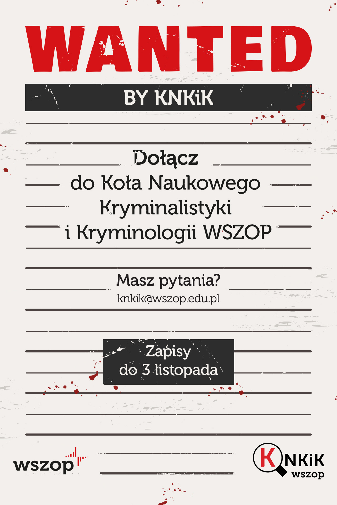 Rekrutacja do Koła Naukowego Kryminalistyki i Kryminologii WSZOP