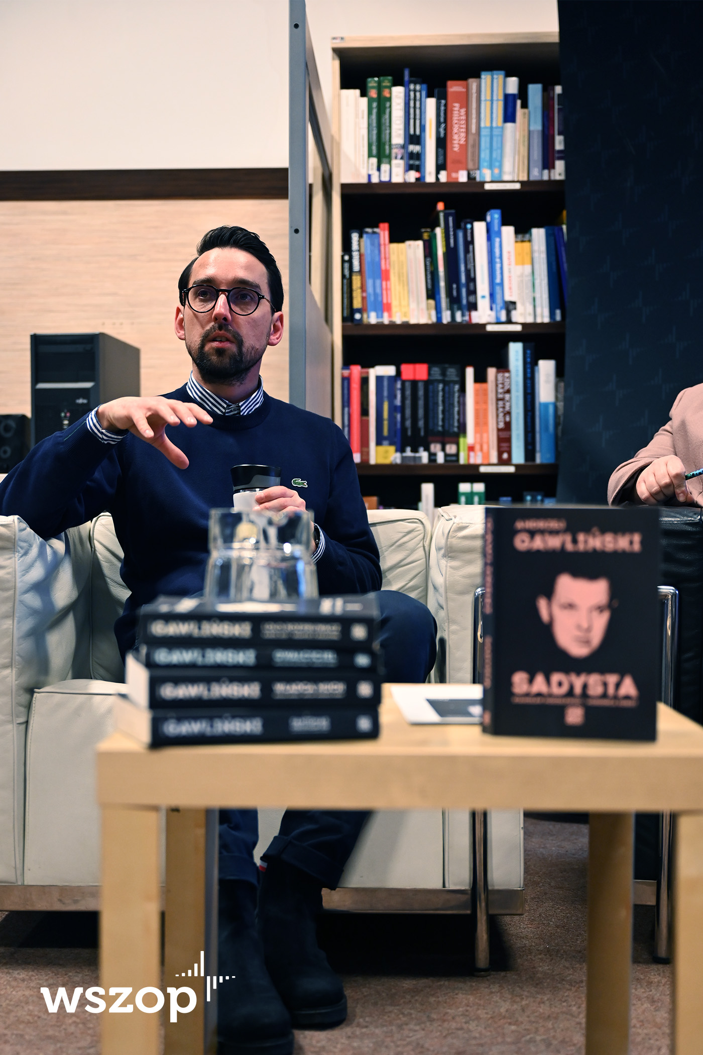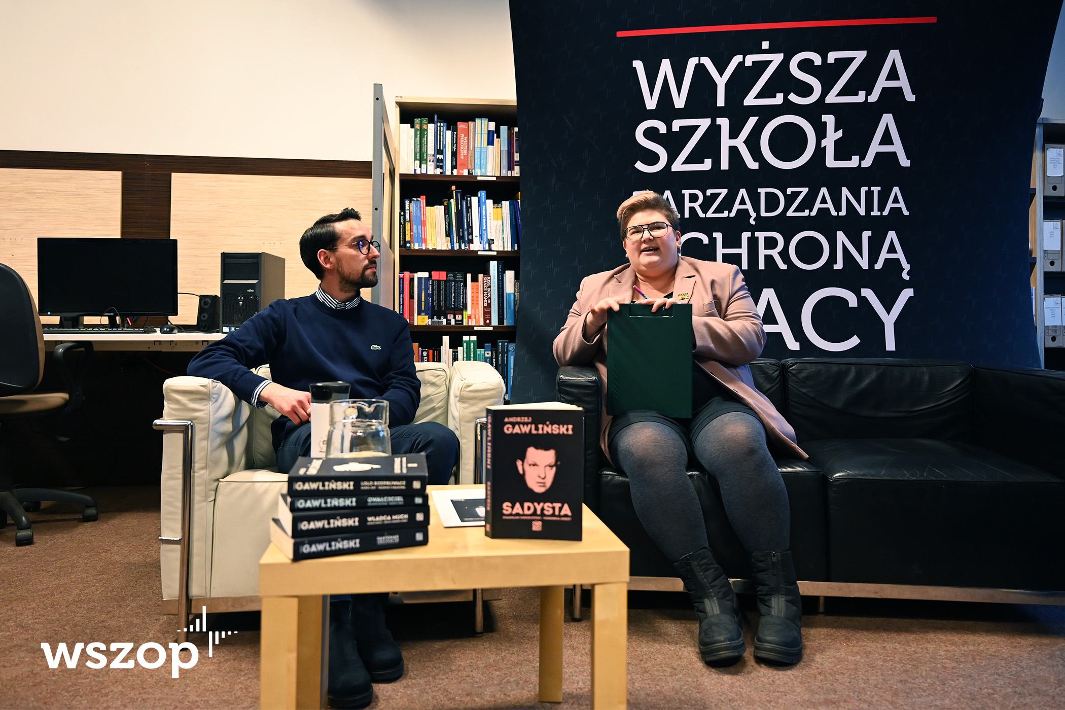 Wydarzenie zgromadziło studentów i pracowników Uczelni zainteresowanych tematyką pracy śledczej, analizą spraw kryminalnych oraz kulisami powstawania literatury true crime. Dr Gawliński opowiedział o swoich doświadczeniach badawczych, procesie tworzenia książek oraz wyzwaniach związanych z analizą materiału dowodowego w sprawach o szczególnym stopniu złożoności.