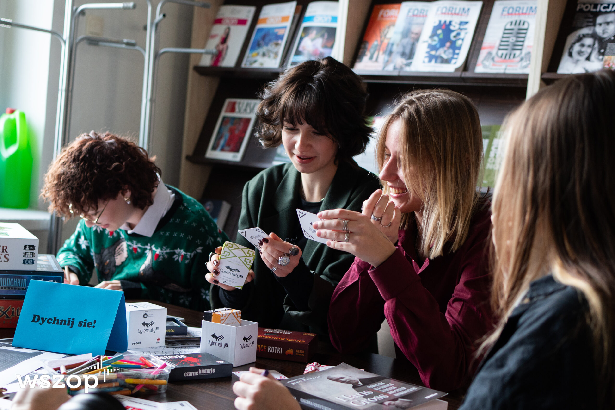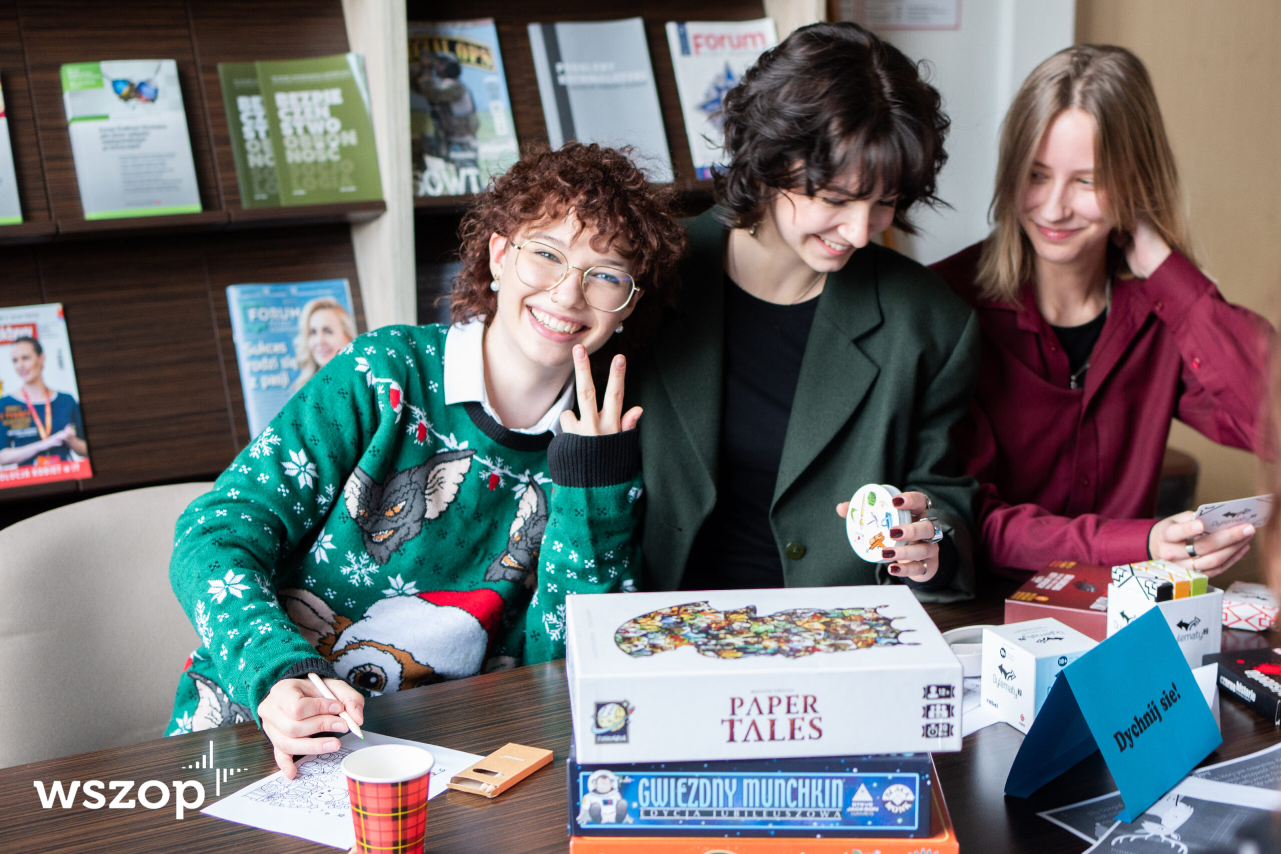 Dal studentów mamy również wypożyczalnię planszówek, z których mogą korzystać przez cały rok. Można je wypożyczyć w dziale promocji (pokój 20) lub na portierni.