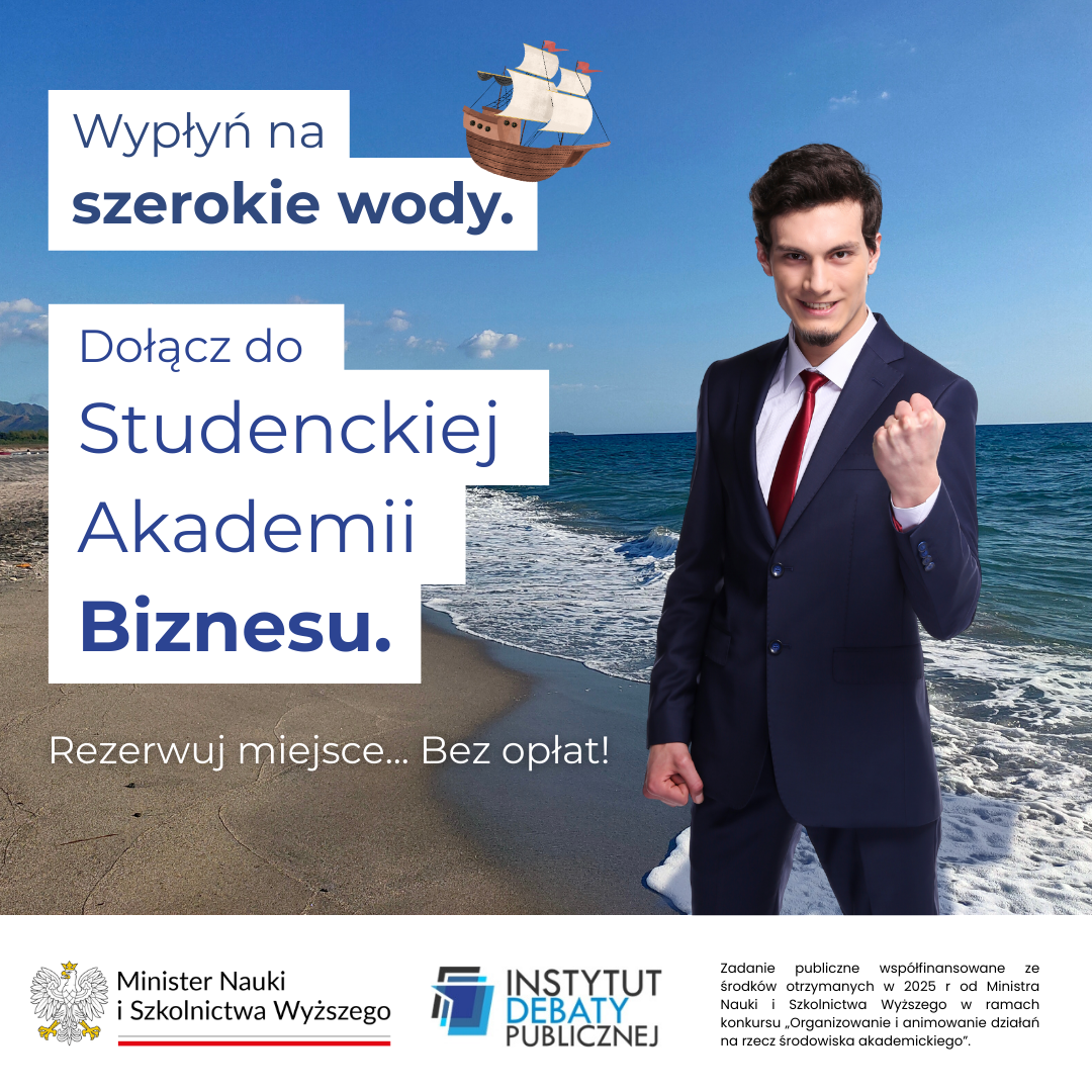Udział w Studenckiej Akademii Biznesu jest całkowicie bezpłatny dzięki współfinansowaniu ze środków otrzymanych w 2025 r. od Ministra Nauki i Szkolnictwa Wyższego w ramach konkursu „Organizowanie i animowanie działań na rzecz środowiska akademickiego”. Szczegółowe informacje oraz formularz zgłoszeniowy dostępne są na stronie: sab2025.pl.
