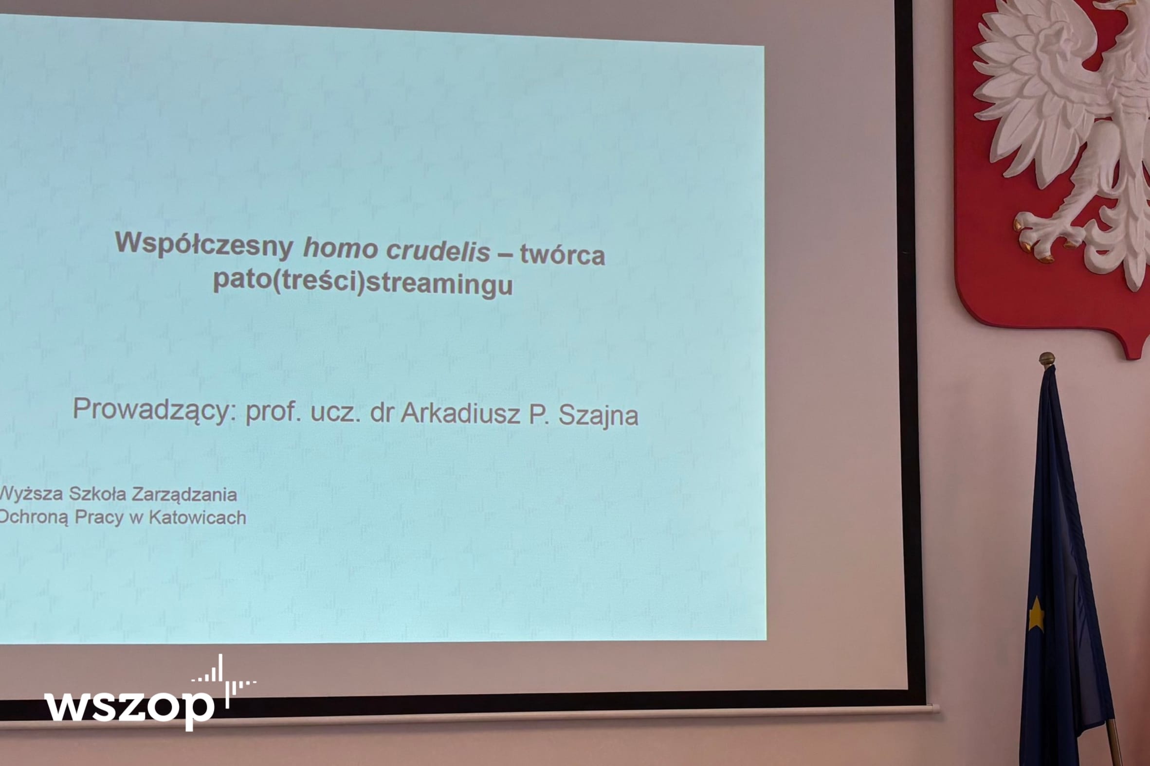 Prelegentem podczas wydarzenia był prof. Arkadiusz P. Szajna, wykładowca Wyższej Szkoły Zarządzania Ochroną Pracy w Katowicach. Podczas wystąpienia poruszył on temat „Współczesny homo crudelis – twórca pato(treści)streamingu”, przybliżając uczestnikom mechanizmy powstawania i funkcjonowania patologicznych treści w mediach oraz ich wpływ na odbiorców, w szczególności dzieci i młodzież.